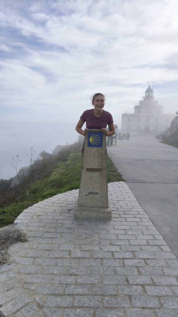 In Fisterra angekommen, war man noch lange nicht am Ende der Welt, das war noch 3km den Berg rauf. Also Sachen abgelegt, schnell das Zertifikat in der Touri-Info geholt und dann ab zum Leuchturm. Leider immer noch nebelig. Aber da konnte man nichts machen. Den Kilometerstein konnte man aber noch ausfindig machen.