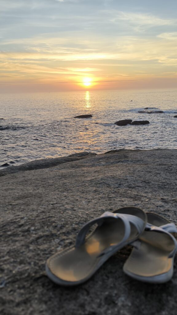 Man sollte meinen, ich hab schon viel gesehen. Nach den ersten paar Kilometern bin ich jedoch einem Tschechen begegnet, der den ganzen Weg in Schlappen gelaufen ist. Von Porto bis nach Santiago und dann nach Muxia. Mit ihm bin ich kurz gelaufen, bis er dann sagte, dass er nicht so schnell laufen kann mit den Schuhen und ich hab ihn zurück gelassen.