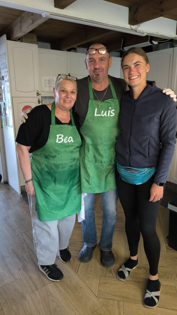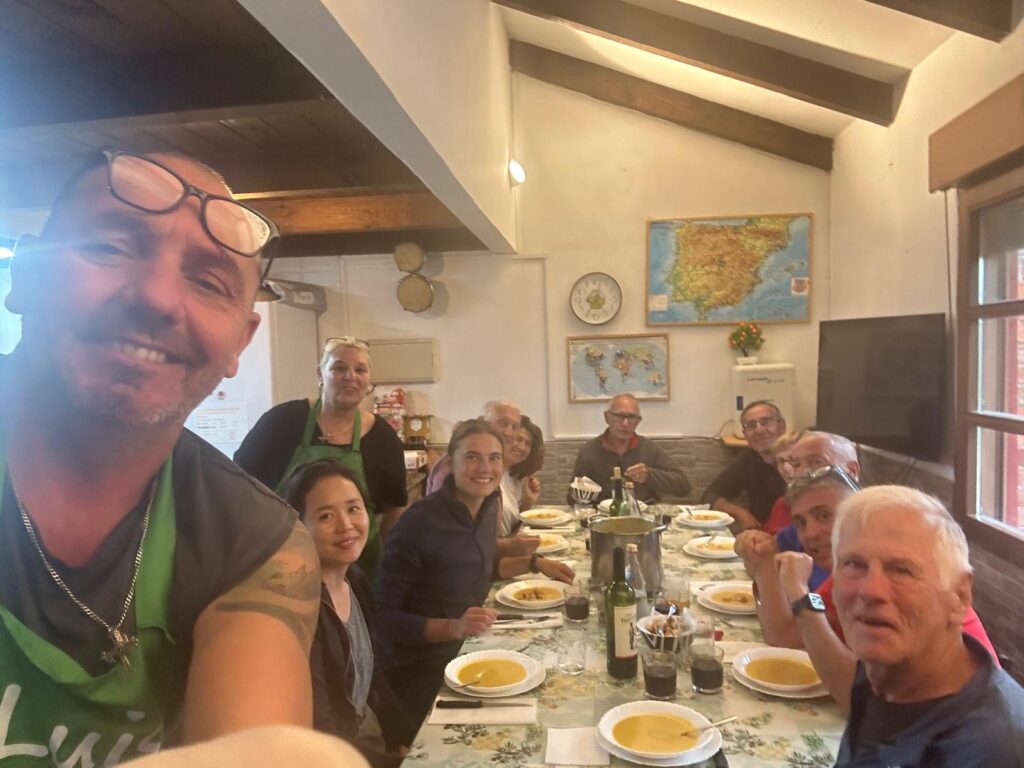 Das Highlight des Tages war allerdings die Herberge. Luis, der Herbergsvater hat mich super nett begrüßt, Zitronenwasser stand bereit und die anderen Leute dort waren auch super nett. Beim Abendessen wurde extra für mich etwas vegetarisches gemacht von Bea, seiner Frau. Vorher haben mich ein paar Italiener auf ein Bierchen eingeladen. Wieder ein tolles Caminoerlebnis!