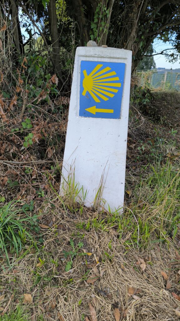 Erst ging der Weg noch auf der Straße an Feldern vorbei, schnell kam man dann aber auf eine große Straße, wo man um die 4km lang auf einem großen Seitenstreifen langlaufen musste. (Kann man sich wie eine Bundesstraße in Deutschland vorstellen). Leider ging es auch danach immer nur an großen Straßen weiter. Mal mit Seitenstreifen, mal ohne, was manchmal echt schaurig ist, da die Spanier nicht die langsamsten Autofahrer sind. Mittags kam ich dann in Avilés an und hab dort nett auf einer Parkbank Mittagsrast gemacht. Noch 17km. Auf dem Weg raus aus der Stadt hab ich noch an einem Obstladen halt gemacht und im nächsten Supermarkt noch Kekse und Schoki gekauft.