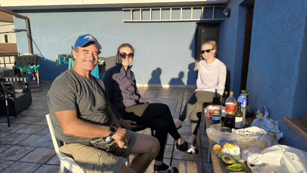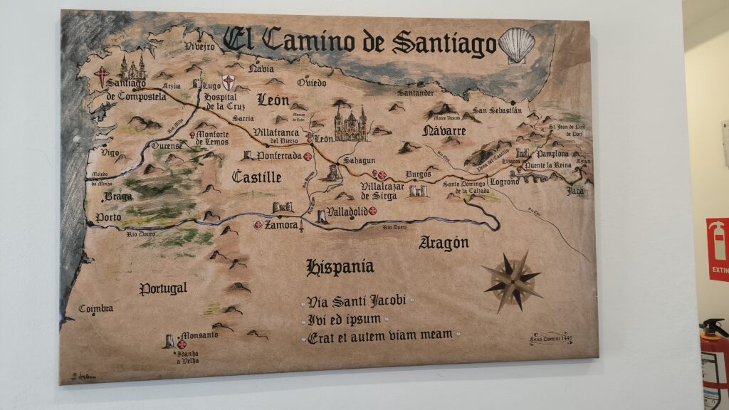 Das Highlight des Tages war allerdings die Herberge. Luis, der Herbergsvater hat mich super nett begrüßt, Zitronenwasser stand bereit und die anderen Leute dort waren auch super nett. Beim Abendessen wurde extra für mich etwas vegetarisches gemacht von Bea, seiner Frau. Vorher haben mich ein paar Italiener auf ein Bierchen eingeladen. Wieder ein tolles Caminoerlebnis!