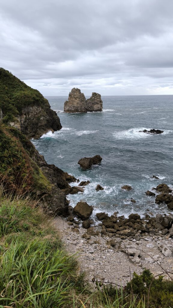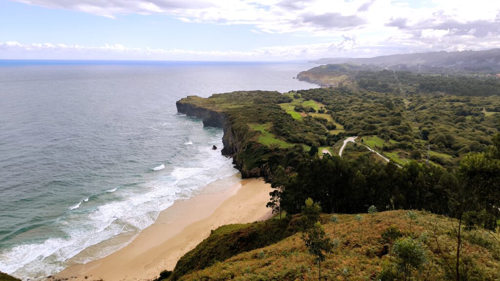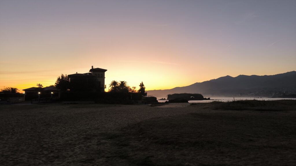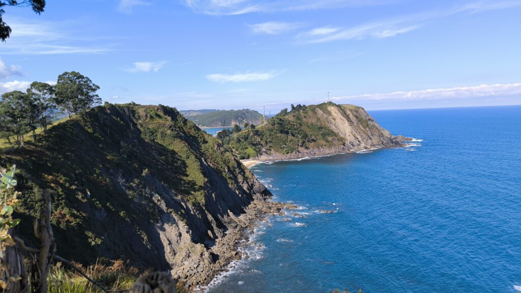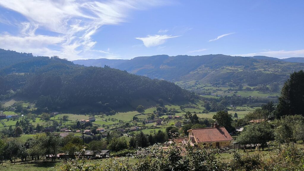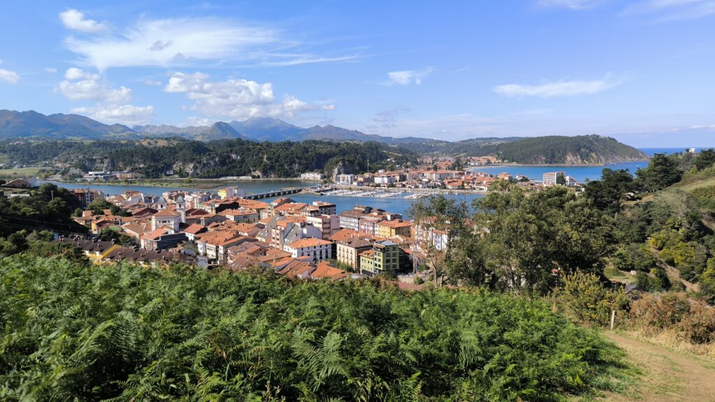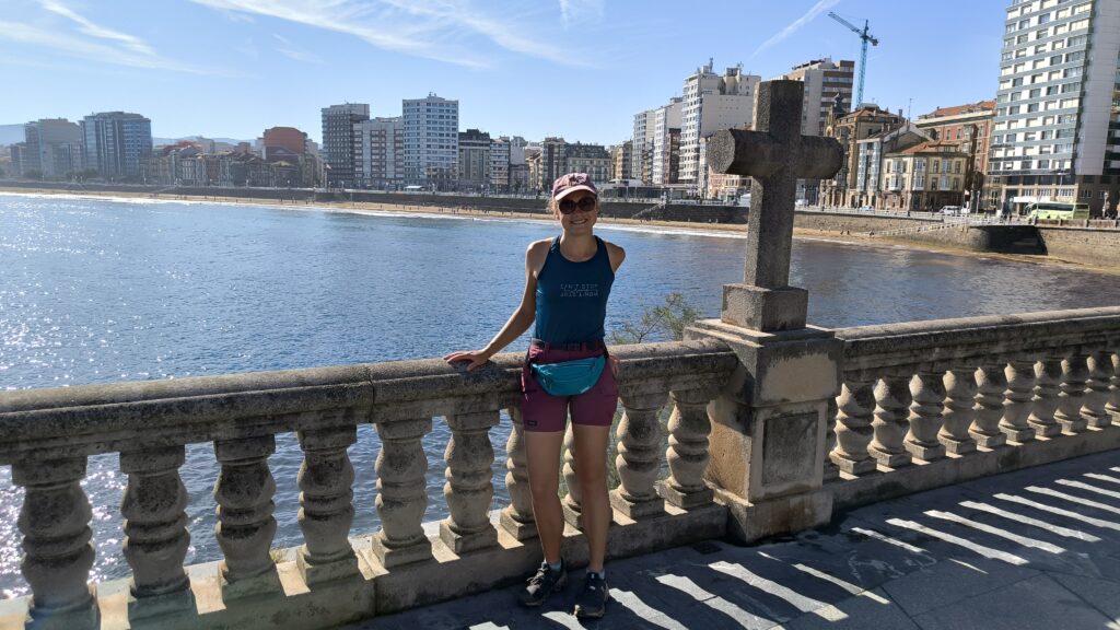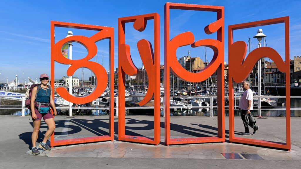 Erst ging der Weg noch auf der Straße an Feldern vorbei, schnell kam man dann aber auf eine große Straße, wo man um die 4km lang auf einem großen Seitenstreifen langlaufen musste. (Kann man sich wie eine Bundesstraße in Deutschland vorstellen). Leider ging es auch danach immer nur an großen Straßen weiter. Mal mit Seitenstreifen, mal ohne, was manchmal echt schaurig ist, da die Spanier nicht die langsamsten Autofahrer sind. Mittags kam ich dann in Avilés an und hab dort nett auf einer Parkbank Mittagsrast gemacht. Noch 17km. Auf dem Weg raus aus der Stadt hab ich noch an einem Obstladen halt gemacht und im nächsten Supermarkt noch Kekse und Schoki gekauft.