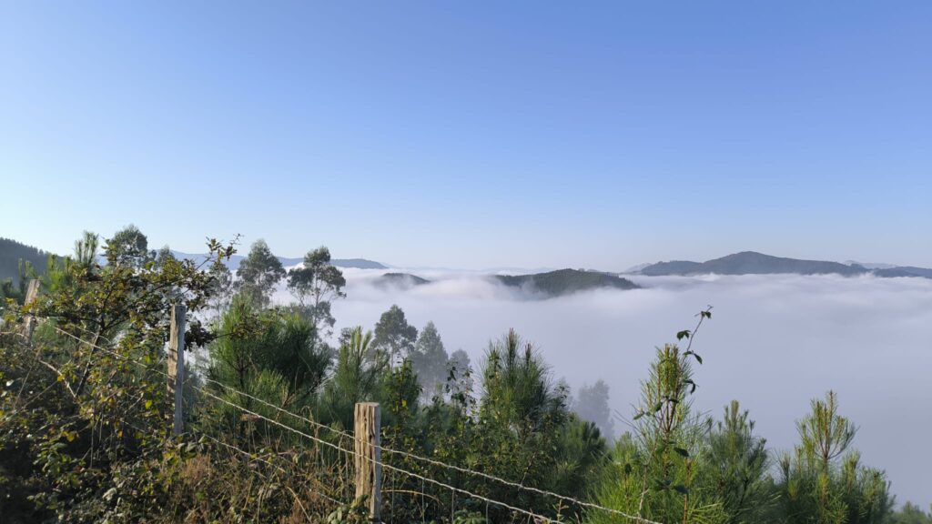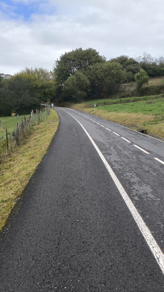 Das angekündigte Frühstück in der Herberge waren Kekse und Milch. Oh yay! Aber zum Glück lag nach ca. 5km ein Supermarkt auf dem Weg, wo man sich mit etwas zu essen eindecken konnte. Geregnet hat es tatsächlich erst so gegen 10:30 etwas, dann gegen Mittags und dann erst abends wieder, aber nie richtig viel.